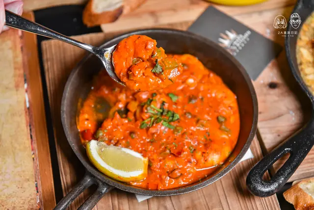 第一口建議先吃原味享受有著濃湯感的燉蝦,接著再擠上黃檸檬提升清爽度,而新鮮去殼的鮮蝦口感扎實有彈性,每隻蝦子皆充分沾附到醬汁,單吃口味就非常足夠,一口啤酒一口燉蝦超爽快!或者拿著可以免費續的法國麵包沾著吃可以使口感層次更豐富。