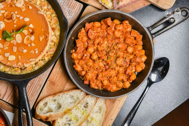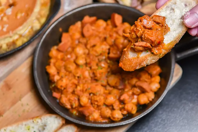每種配料都處理至差不多大的大小,搭配加入紅椒粉茄汁,口味酸香辛辣相當濃郁,一口麵包一口鷹嘴豆讓人越吃越涮嘴!而鷹嘴豆口感粒粒分明但卻不過硬,這樣的軟硬度我們很喜歡。