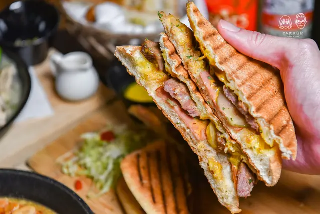 豬里肌經過低溫慢烤之後再切片,有著鮮明的鹹香感,口感扎實但一點也不柴,裡頭的酸黃瓜使三明治香氣更有層次,而整份三明治吃起來相當厚實且硬脆,建議沾著蒜味奶油醬汁讓口感增添濕潤~