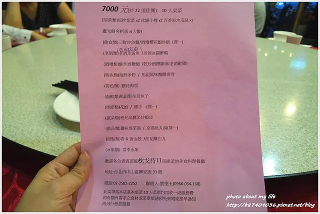 當天被揪吃7000元的合菜所以沒特地研究菜單 雖說都由店家配菜但附上menu讓我們能對照等會上桌的菜色