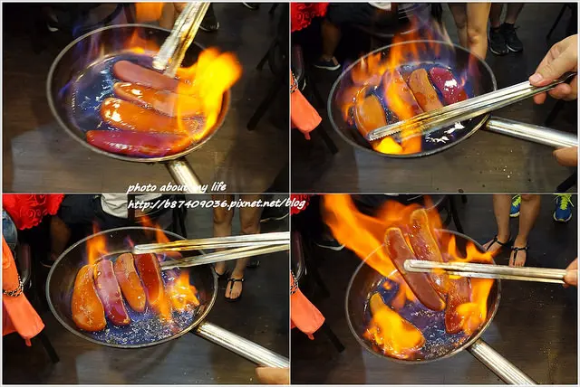 馬祖野生烏魚子上桌前先來場火焰秀 竄起的火焰讓平底鍋裡的老酒酒香四溢
