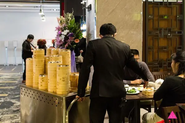 保有傳統茶樓懷舊式服務的蒸籠點心推車,由專人推車到客人桌邊供應蒸籠類港點,