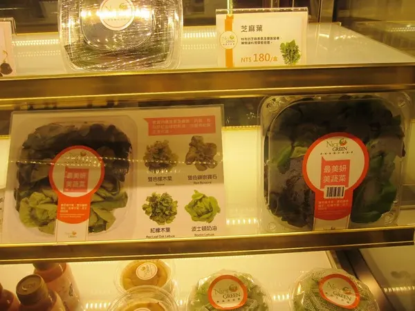 櫃台的冰櫃展示了各種蔬菜盒