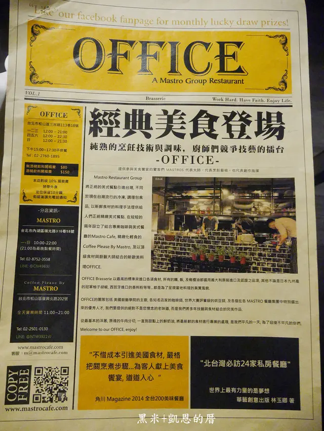 不過位在民生社區的Office By Mastro開幕後,聽說主廚都會在此研發新菜色