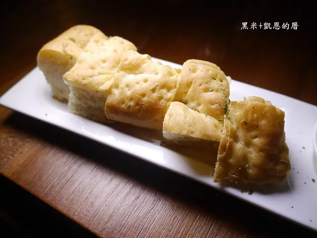 每次來用餐,點餐後店家都會招待迷迭香麵包與一盤balsamic vinegar
