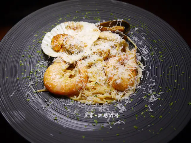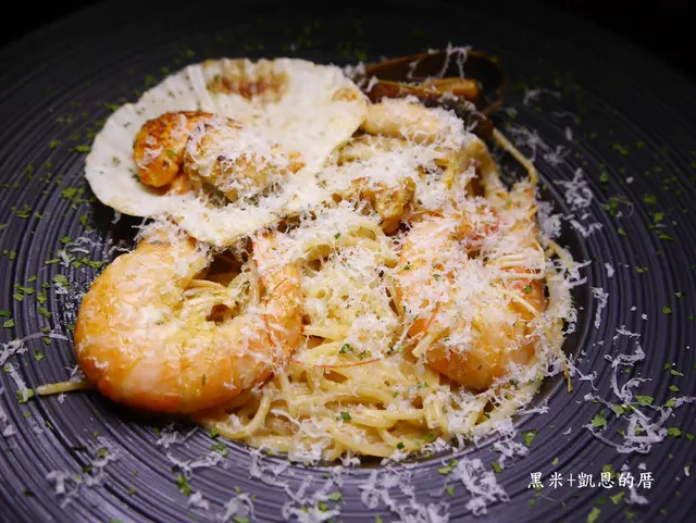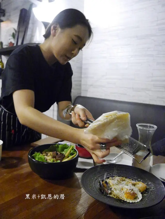 麵盤上桌後工作人員會來桌邊現刨帕馬森起司