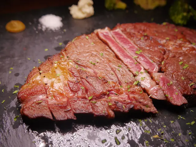 OFFICE採用米糠油與自製鯷魚奶油醃製牛肉,再利用舒肥機真空低溫烹調