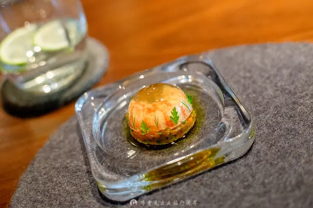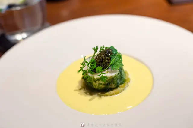這次RAW夏季餐點就是要呈現整個法式感,所以在每一道菜都會把食材跟成本放上來展示,不像是吃餐,反而是看整個表演,Superior Ocietra 魚子醬香檳安康魚用的是Superior Oscietra 鱘魚魚子醬,市售30g就要兩三千元,安康魚搭配魚子醬整體會有一點鹹,然後清爽的香檳醬讓味道更豐富,整體來說香檳醬很特別,讓整道料理更為完整。