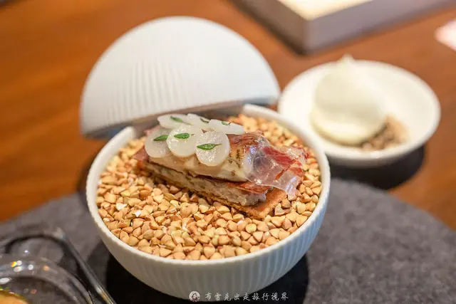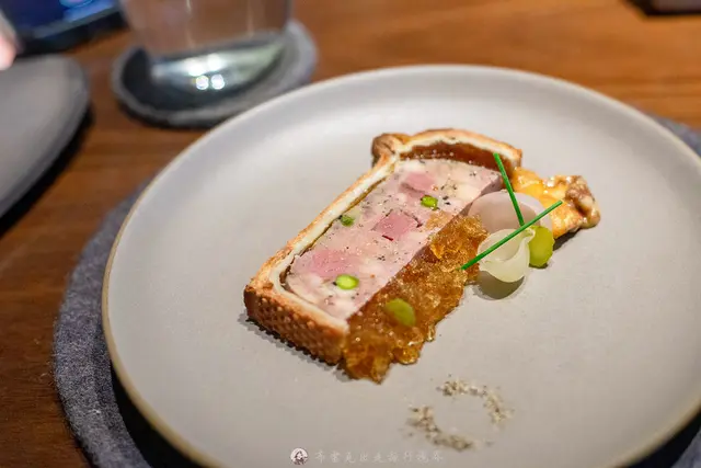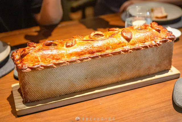 肉派是法餐蠻經典的料理,四色野味獵人肉派製作繁瑣又非常複雜費工,《RAW》除了外面皮包著肉派外,還注入肉凍,讓整個看起來很飽滿,成型很美,只條肉派能切出20多份,麵包皮厚實帶著Q度,中間餡料非常紮實,凍的口感跟香氣還蠻明顯的,整體吃起來偏鹹,但還不錯。