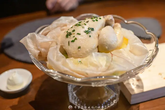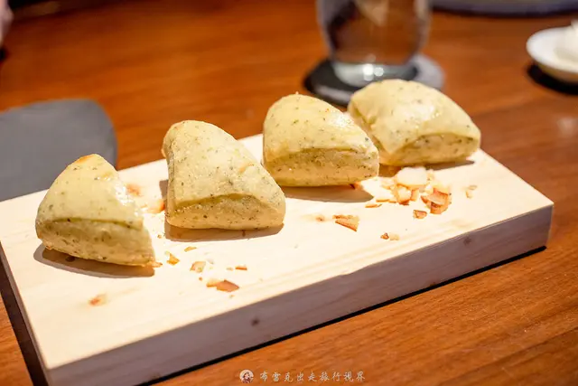 Aligot 黑松露鄉村瀑布馬鈴薯這到會在桌邊料理,但應該也不算是料理,就只有一道應該比較巷是表演吧!就很像是法餐唯一桌邊完成的那道就給當桌的女生,其他人的就是表演後才上,只是其他人上桌的時候是有用小鍋蓋蓋著,裡頭的黑松露濕掉,雖然聞起來還是有香氣,但味道就沒這麼迷人,底下是馬鈴薯泥搭配生蛋,整體來覺得還不錯,只是味道淡了一些,搭的麵包也是松露麵包。