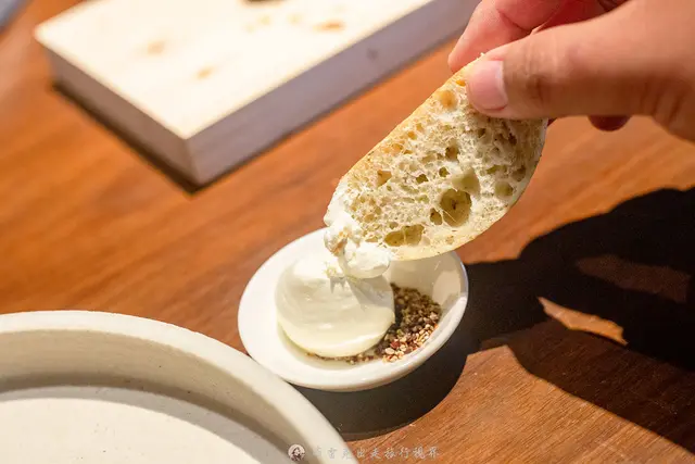 麵包是Ciabatta巧巴達,吉可頌的麵包真的很好吃 ,有放一些香料但不是很明顯,沾奶油吃還蠻順的,後面有一點類似酸種麵包,吃起來帶有發酵酸度,也是好好吃,大推啦!