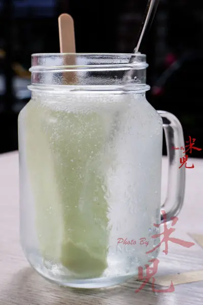 因為這裡的韓式早午餐都是單點的(分量都不小),如果要喝飲料要另外點喔!加點飲料加80大洋,冰熱的都有,其中有這款朋友點的哈蜜瓜汽水,原來韓國俗的米兒不曉得這個是在韓國很流行的喝法,把韓國的哈蜜瓜冰淇淋丟到汽水裡喝,聽說很好喝??我覺得和傳統飄浮汽水有異曲同工之妙吧??只是口味是哈蜜瓜比較酷!