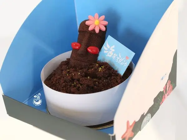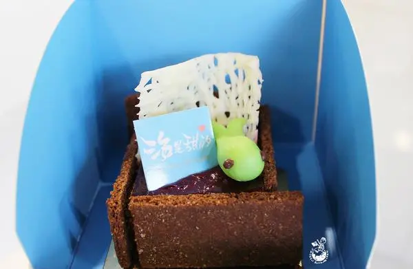 內含覆盆子果凍 、巧克力慕斯、榛果醬、海鹽巧克力餅乾,小鯨魚有幾種顏色可以選擇,像我初訪選的是黃色小鯨魚