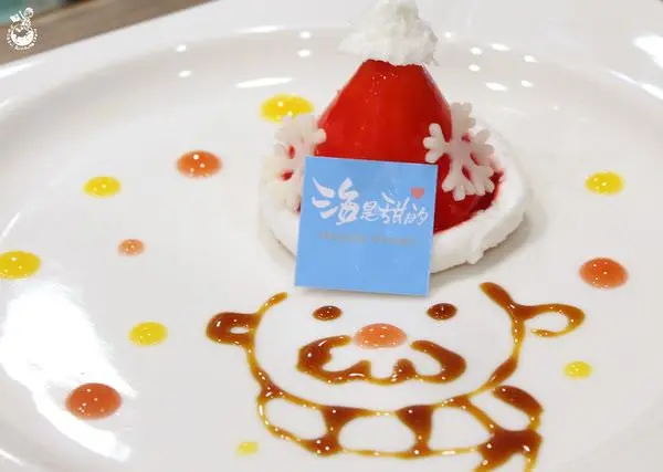 每年聖誕節都會推出不同聖誕節主題的期間限定甜點,聖誕帽供應至12/31,2017開始就NO速了!新北店的正妹店員還幫我畫了一個聖誕老公公的臉在帽子下方,十分應景!