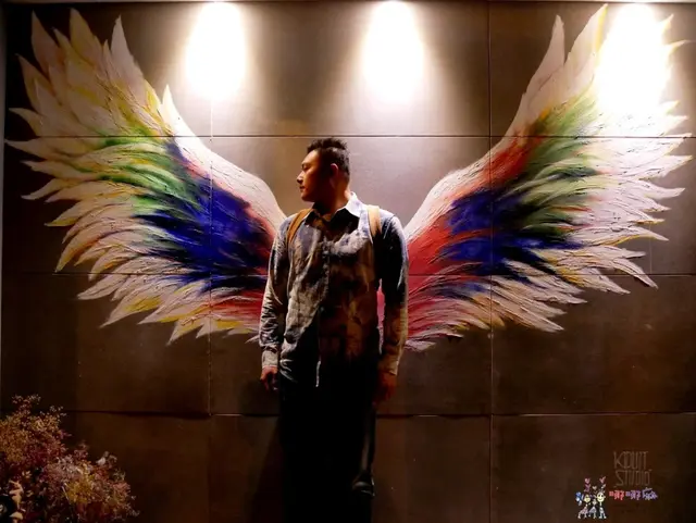 除了門口的翅膀外,店裡還有個很好拍的是牆上金色的世界地圖,這是有設計底子的老闆娘自己巧思設計的,很厲害說。