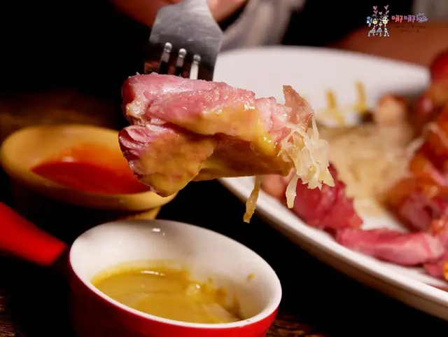 他的沾醬也很特別,是店家自己製作的墨西哥辣椒醬,這個辣度見仁見智,和我們一起的湯老師說沒什麼辣,還有點甜,但對於不太吃辣的阿寶來說,卻是辣到快升天,這反差怎麼這麼大呀?我個人是覺得還好啦,而且我很喜歡墨西哥辣椒的香味,拿來配豬腳非常的剛好。