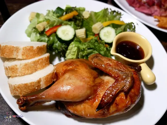 另一道主餐是香料烤半雞,很喜歡吃烤雞的我,光看到那個外皮就有點受不了了,似乎看到烤雞很開心的跟我招手。
