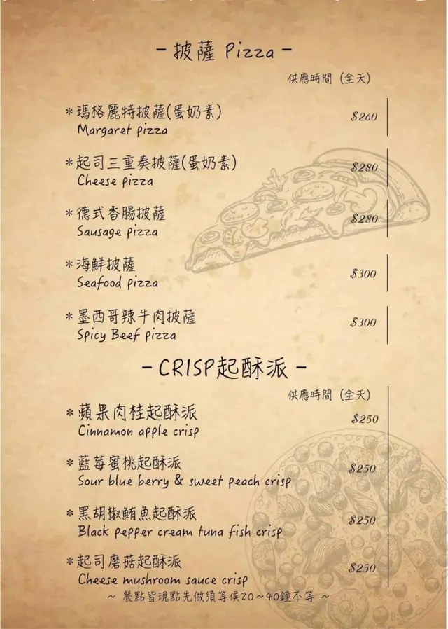 先上桌得趁熱吃的是德式香腸披薩,他們的披薩都是自己手工桿的薄皮,是說這種披薩我一直覺得要到這種店吃才會好吃,如果是叫連鎖披薩店的,往往都會讓人難過。