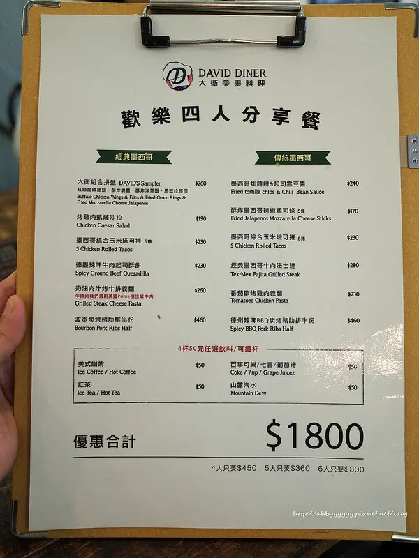 今天要介紹的這間David's Diner正是美式墨西哥料理,這就來看看墨西哥菜的熱情與火辣吧!