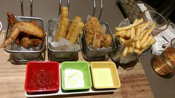 1.炸物- 歡樂拼盤點心類,炸魚薯條還蠻好吃的~