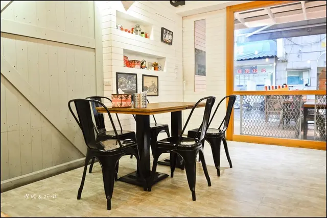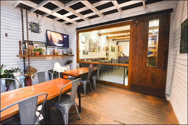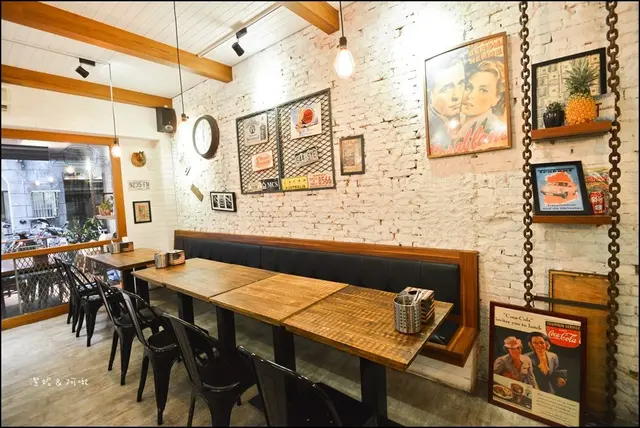店內走輕鬆自在的氛圍,放著快節奏的音樂,並使用了大量的文化石與木造,牆上也有不少美式風格的布置