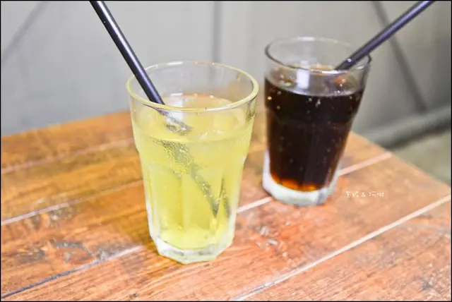 這是我們今晚點的飲料:百事可樂與山露汽水,50元的飲料是可以續杯的唷