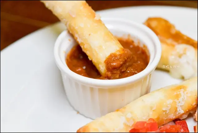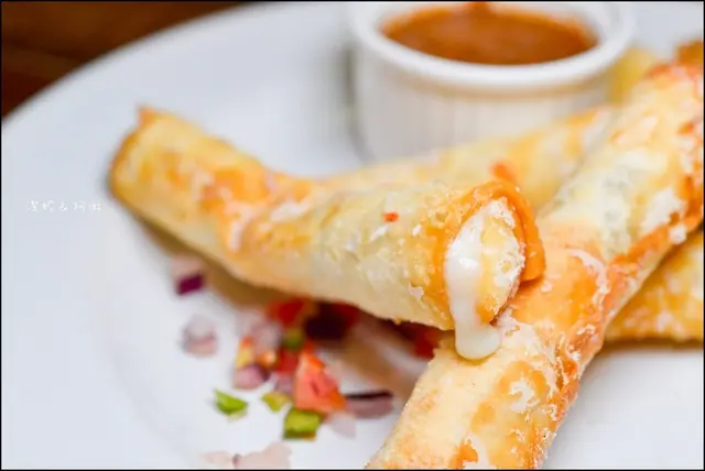 以麵皮包裹著新鮮馬芝拉起司與墨西哥辣椒,下鍋油炸;外層的麵皮炸的酥脆,裡頭的起司香濃且口感紮實,咬下一口,首先會在嘴裡蔓延著墨西哥辣椒的嗆辣,但會越嚼越香,因為和起司的味道混合在一起之後變成一種溫和的味道 好吃到這份有五條,我就忍不住先嗑掉四條。