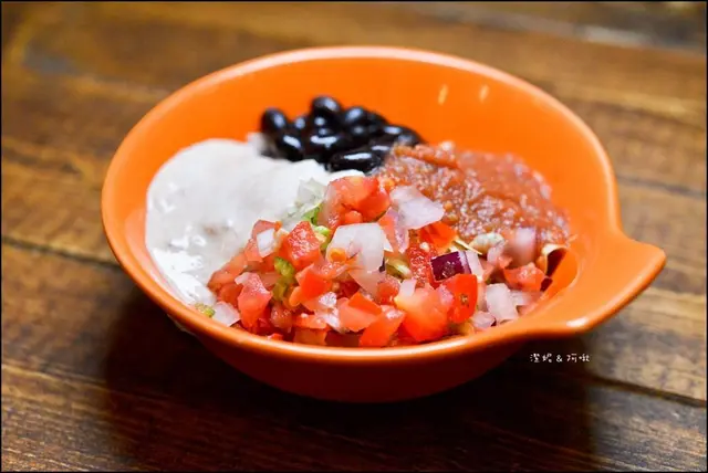 這道餐點主要是由幾種元素組合而成:墨式香料飯、甜椒與蔬菜、現烤香料雞肉、法士達沙拉、墨西哥餅皮