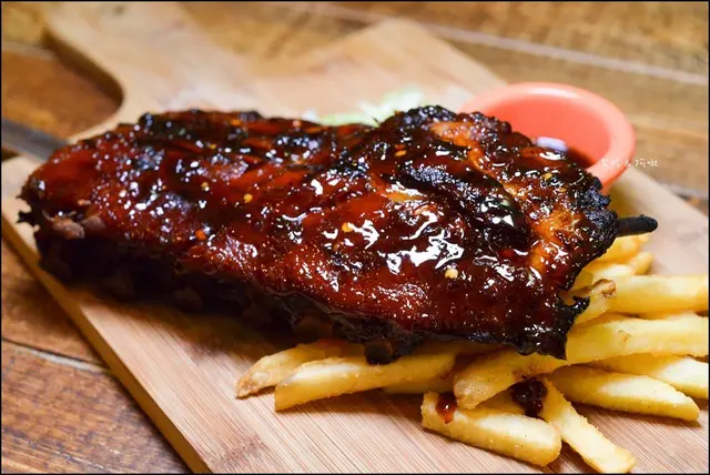 如果有在看外國的美食節目,豬肋排是絕對不能錯過的美食之一 先將新鮮豬肋排燉煮數小時,再以慢火烘烤、淋上自製的波本烤肉醬,口感超軟嫩且非常夠味!!其實平常我不太吃豬肋排,因為我不太喜歡啃肉骨頭,覺得會卡牙縫啊 XD 再來是前幾天我剛動了植牙手術,更不想大口咬肋排,本來打算要放棄這道全部給阿啾吃,沒想到大衛的豬肋排烤的真的非常軟嫩啊!用叉子輕輕一撥就可以將豬肉撥離骨頭