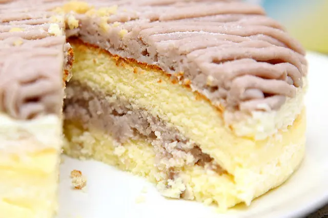 一般蒙布朗蛋糕都是用栗子餡做的,諾亞特地運用台灣在地的食材:大甲芋頭做餡料