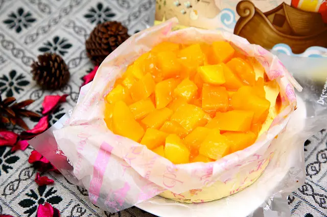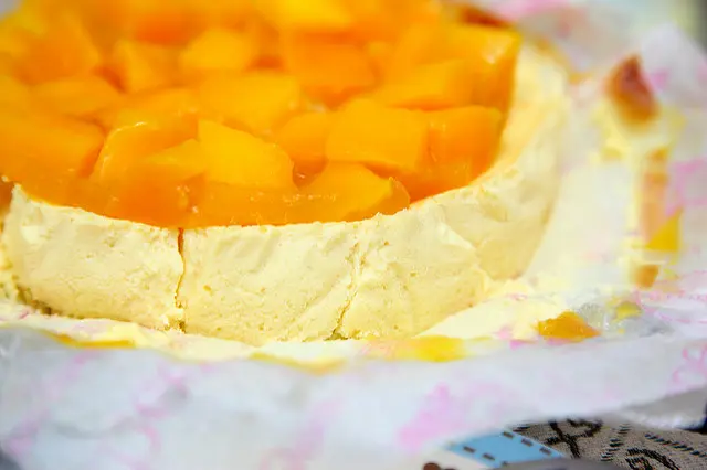 好戲還在後頭,不只是上面的芒果而已,就連下面的乳酪蛋糕體也加入了芒果泥