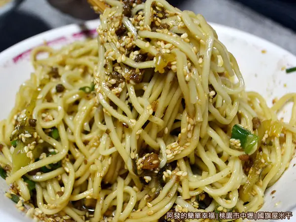 乾麵上面還淋上大量的滷肉燥,再撒上了大量的芝麻,