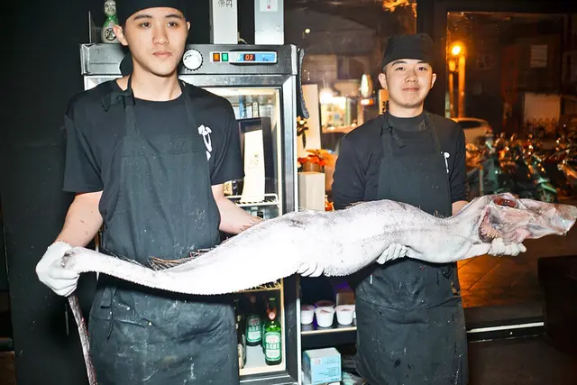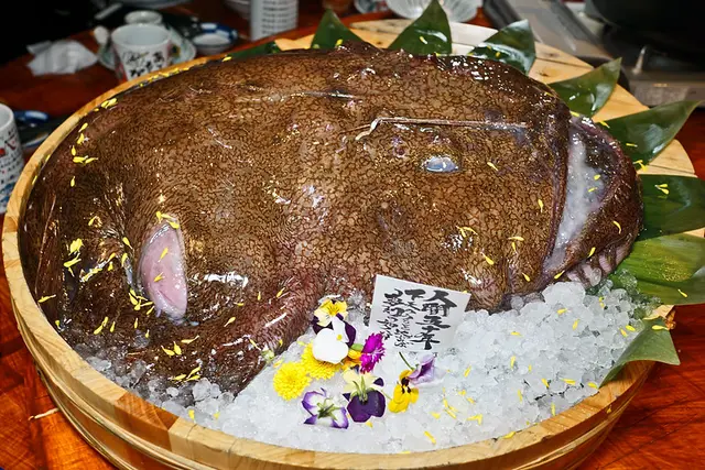 接下來是地震魚,台灣因為就處於地震常發生的地帶,所以難免就會有機會吃到這種深海魚類。它本來是活在很深的海裡,因為地震之故被弄到近海淺海區,因為無法適應壓力變化很快就掛了