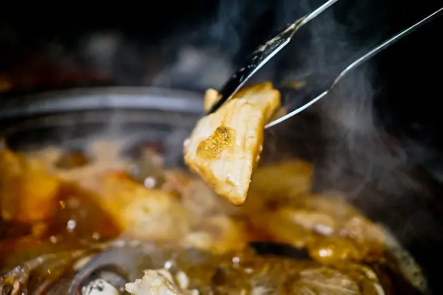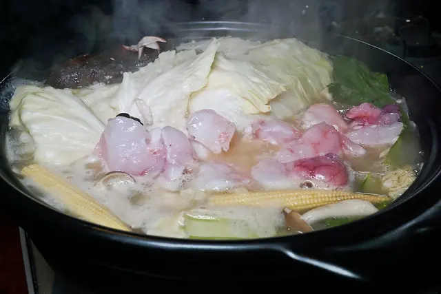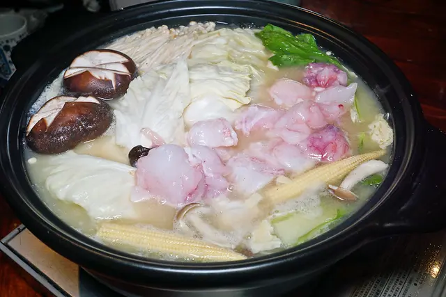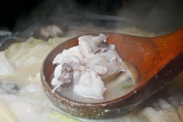 煮好後,火鍋湯超鮮美,魚肉也很好吃。在日本,冬天吃火鍋一向有「西のふぐ鍋、東のあんこう鍋」ふぐ指的是河豚,あんこう就是鮟鱇魚了