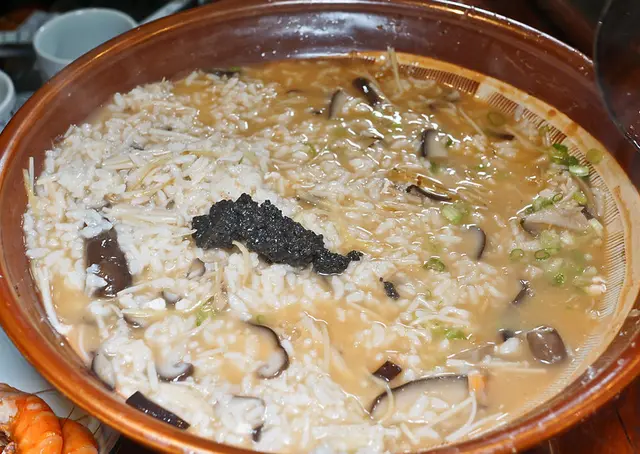 松露醬!! , 這鍋的吃法就是把松露拌到這樣多海鮮煮成的粥裡