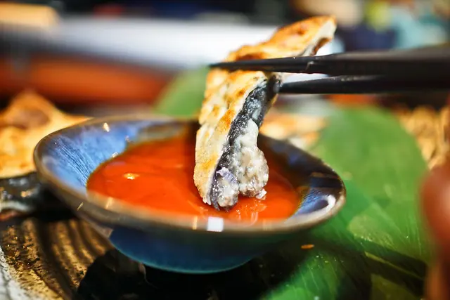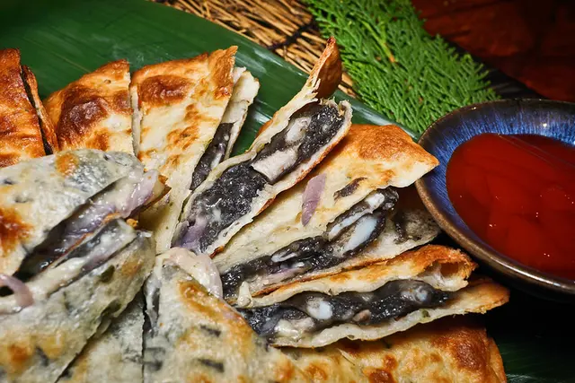 有人說它像墨魚香腸,這就看個人口味,起司夾著花枝,可能還配了點墨魚汁,讓整體吃起來鮮味十足,皮相當脆