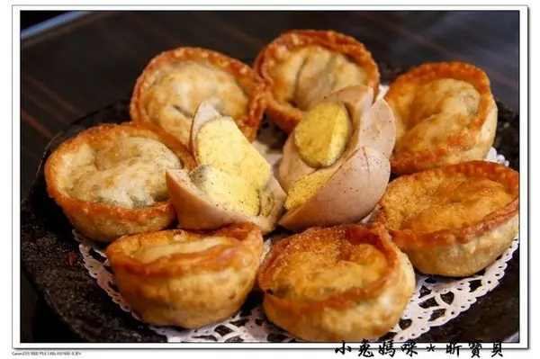 『炸餃子-韭菜冬粉』老闆說這就是迷你版的韭菜盒子,炸餃子包成圓形真的超級超級可愛的!排成一朵花的樣子,連滷蛋也是排成一朵花~