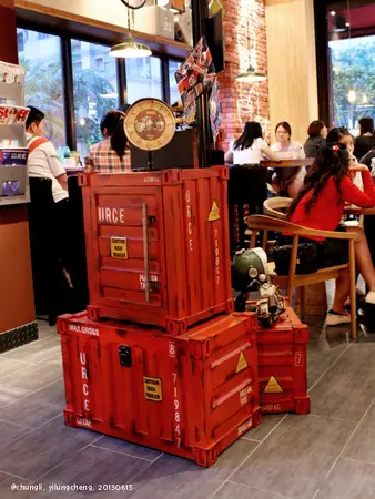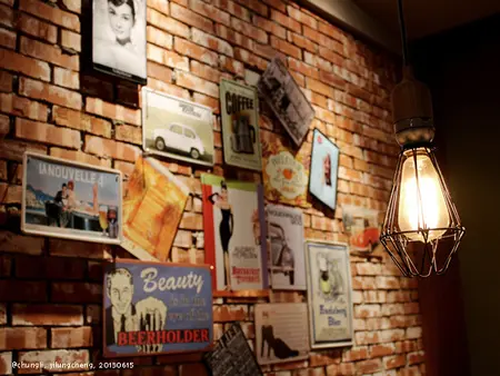 不過整體風格, 丹馬克兩面採光, 用了大量木製品、紅磚和黃燈, 還有各種美式雜貨, 顯得溫馨一些。