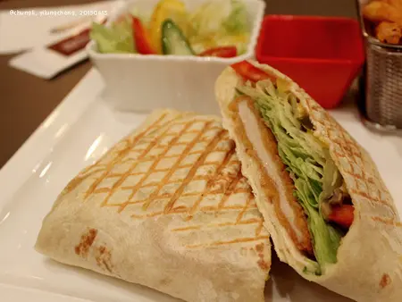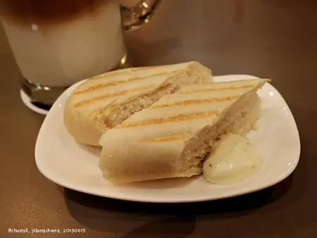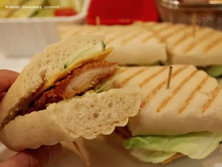 果然初次造訪還是要選招牌... 我個人還蠻喜歡的喔!他們的帕尼尼紮實Q彈, 卻又烤得好鬆軟, 非常好吃,裡面除了里肌肉, 還有起司片、小黃瓜和塔塔醬, 整個非常夠味...