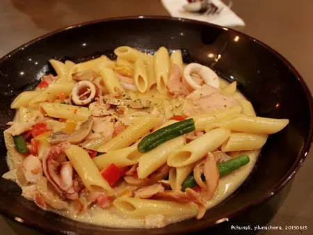 還有奶油燻肉中捲筆尖麵 ($180), 評價都還算不錯;義大利麵也是有附帕尼尼麵包的!