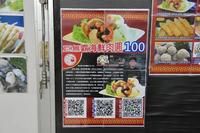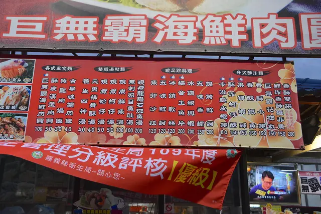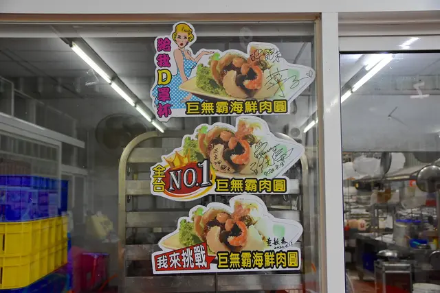 這裡肉圓有巨無霸肉圓及巨無霸海鮮肉圓,貼紙上還有電視明星簽字。