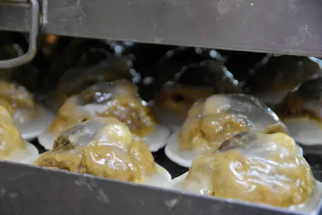 大型蒸箱裡面肉圓呈現晶瑩剔透外觀,偷偷拍一張與各位分享與觀賞。