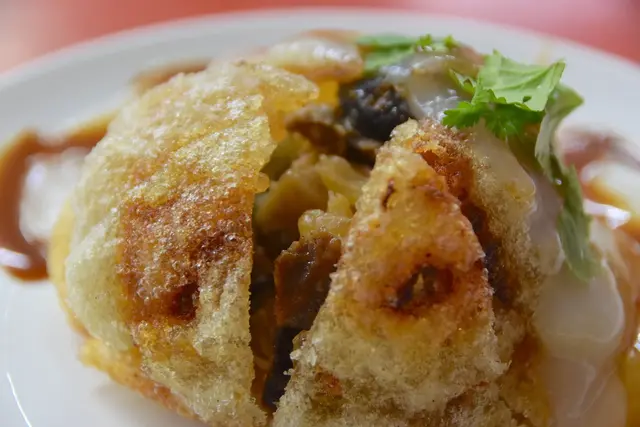 這肉圓外酥內軟裡面滿滿餡料真豐富,每一種餡料皆呈現該有的風味,整體吃起來超好吃又很飽。