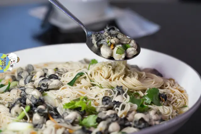 油蔥酥/韭黃/蘿蔔絲/洋蔥絲熱炒過再加麵線跟生蚵拌炒,