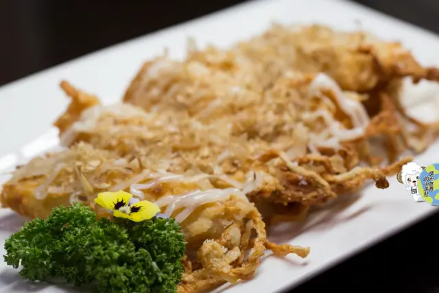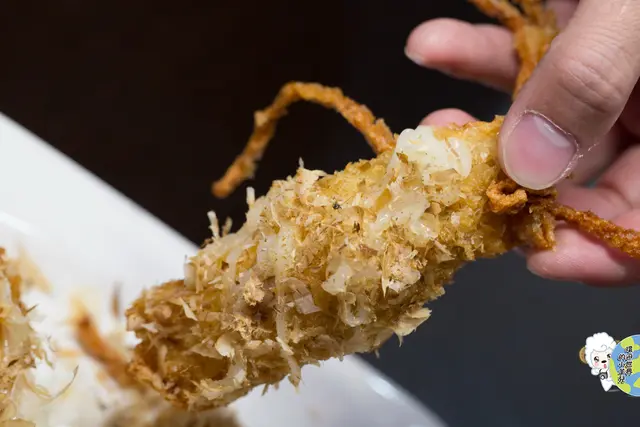 這個真的超強的炸的外酥內軟,外面加沙拉、柴魚片。