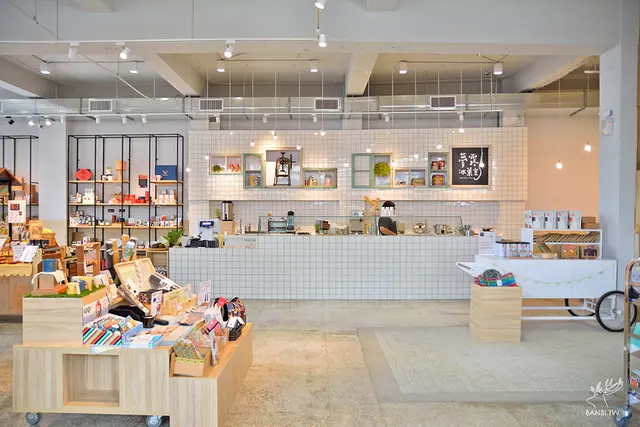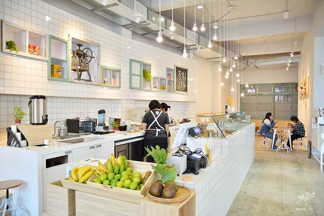 有現代的咖啡館結合復古台味風格,兒時記憶的小物在後方的牆面上可以看到,櫃台前也擺了放了一些水果。