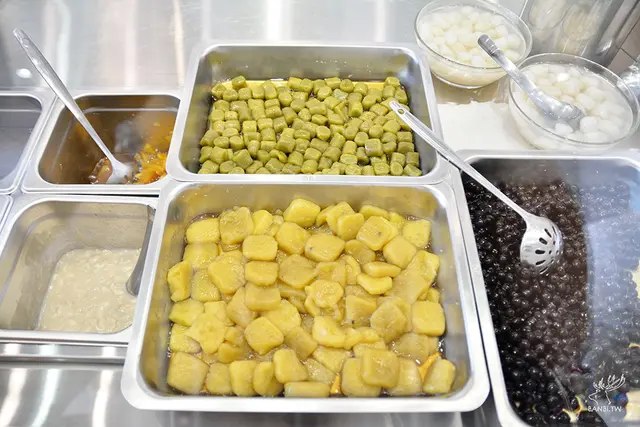 我對下方黃色方塊的感到好奇,店內人員說那是他們自做的配料地瓜圓,成份很自然無添加色素等。