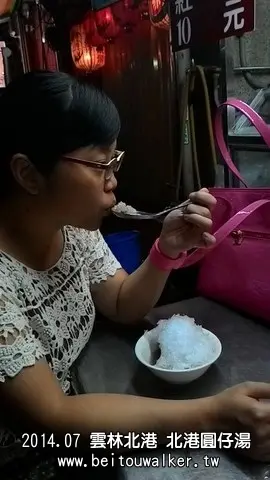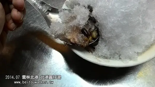 晚上10點半,我跟公主準備前往北港朝天宮。去朝天宮之前白芷公主又想吃點冰的消暑。北港中山路上有一間人氣冰店叫"北港圓仔湯",我們從笨港客棧步行前往原本只是想去全家買冰棒,遠遠的還看到店家的燈亮著就趕緊加緊腳步過去。老闆看到我們說:"歹勢,圓仔賣完了!只剩下紅豆",真是殘念,既然都來了,還是買了碗紅豆冰搭配公主喜歡的料給公主消暑嚕!
