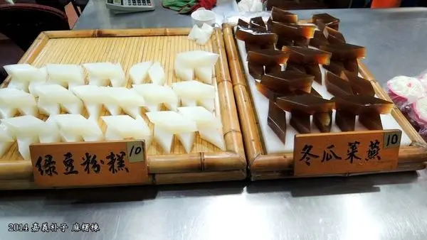 我們兩剛好看到老闆正在弄剛出爐的麻糬,正當我們兩東看看西看看,陸續有一些在地人來買消費,看得出來這家店在朴子還蠻受在地人肯定的。這次我們買了麻糬、綠豆粉糕以及冬瓜燕菜。價格都非常便宜,也都非常好吃。比較讓我印象深刻的就是綠豆粉糕,名子叫"糕",可是口感卻有著像杏仁豆腐般在強一點的黏著度,味道也跟我腦子中的綠豆糕差很大,真的很特別!冬瓜燕菜就到處吃得到了,這家的風味比較不那麼甜。麻糬因為我胃的關係只有吃一口,裡面包的是綠豆,我在北部看到的麻糬很少包綠豆的,特別特別!