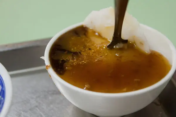 彰化美食這家杉行碗粿真的是出乎我們意料,一般想到彰化美食不外乎是爌肉飯、肉圓,基本上不會跟碗粿連在一起,但這家位在彰化市的杉行碗粿可是在地老字號碗粿店,google評價1700多則拿4.2個星,加上開業超過五十年,光看這數據就知道相當強悍,這天來彰化玩特別來朝聖一下杉行碗粿|交通方式&停車資訊杉行碗粿就在彰化市的成功路上,附近還有北門口肉圓跟泉控肉飯,可以順便一起吃,我們來得時候大概是早上十點,就有不少在地人在門口買碗粿杉行碗粿用餐環境很寬敞舒適,牆壁上都有很古早以前杉行碗粿的老照片,真的是很有歷史價值呢杉行碗粿應該的碗粿應該是在另外一個地方做的再送過來這邊炊蒸販售,店前停了一台小麵包車,車上放了很多碗粿,老闆會用小推車下碗粿,然後再拿去蒸爐蒸熱杉行碗粿|菜單價目表杉行碗粿的菜單,干貝蛋黃碗粿是特製碗粿,招牌碗粿是45元,湯類也是超便宜的,還有賣甜的桂圓糯米粥,也是店家自己做的,杉行碗粿是採自助式,餐點要自己端杉行碗粿|招牌碗粿、竹筍湯、桂圓糯米粥招牌碗粿看起來白白的,很像客家碗粿,老闆會先挖一角碗粿起來放醬料,有點像便當盒格子的概念,醬料是蒜味的,吃起來蒜香味很夠而且帶點甜度,碗粿軟嫩又有米香吃到一半,疑?內有乾坤!碗粿裡竟然有一顆大肉球,口感很像肉圓裡的肉餡,裡面還包了大香菇,尺寸也超大一顆,碗粿吃著吃著就變成吃肉圓了,哈哈哈如果覺得不夠味,桌上還有辣醬跟蒜泥調味料可以自己再加竹筍湯,一碗才20元,竹筍給一大堆,無可挑惕,筍脆湯甜!桂圓糯米粥,桂圓糯米粥還是冰的!而且裡面有很多桂圓肉,糯米吃起來很軟Q又香,整體口味不甜不膩,桂圓糯米粥超有水準!杉行碗粿真的很特別好吃,是以往沒吃過的碗粿口味,尤其裡面加了一顆大肉球,吃起來好吃又增加不少飽足感,竹筍湯一碗才20元,桂圓糯米粥也是悍將一枚,下回有機會來彰化玩,一定要來杉行碗粿吃看看唷!…查看更多